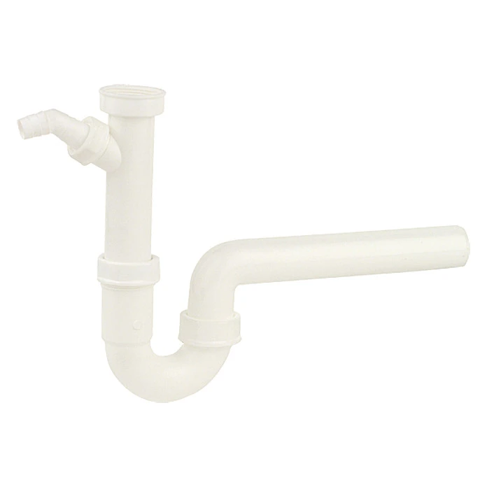 Diese Ablaufgarnitur ist als Spülensiphon geeignet. Sie verfügt über einen Maschinenanschluss zur Montage des Ablaufschlauches. Der Anschluss für das Spülenventil beträgt 1½» und der Abgangsbogen, der das Abwasser zur Wand führt hat einen Durchmesser von 40 mm. Die Rohre sind problemlos mit einer Metallsäge kürzbar und mit handelsüblichen HT-Rohren verlängerbar.