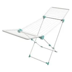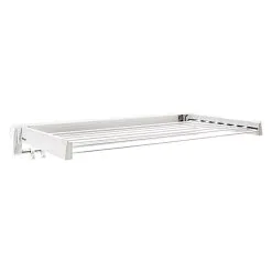 Der Wäschetrockner Artdry 80 von Artweger verbindet Design mit Technik. Die versenkbaren Stahlstäbe sind kunststoffummantelt und benötigen kaum Platz. Der Wäscheständer hat eine Leinenlänge von 6.1 Meter.