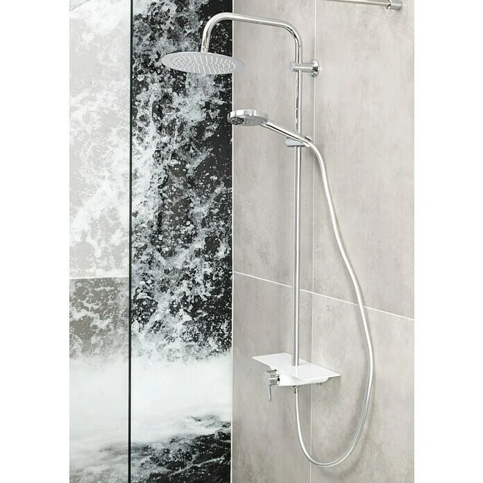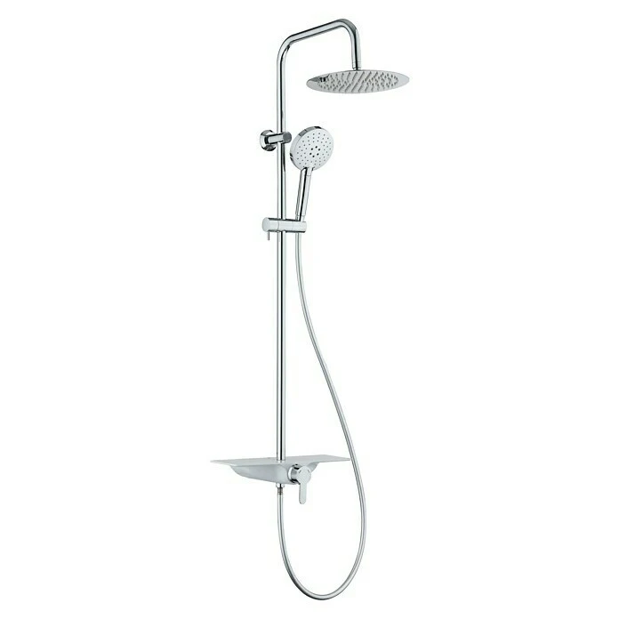 Das Duschsystem Texas von Camargue ist die perfekte Lösung für ein luxuriöses Duscherlebnis mit Kopf- und Handbrause. Das komfortable Komplettset besteht aus einer Kopfbrause, einer vollverchromten Handbrause und einem höhenverstellbaren Steigrohr (80 – 120 cm). Das Easy Clean System verhindert nachhaltig Kalkablagerungen an den Düsen. Des Weiteren sind eine Einhebelarmatur inklusive Glasablage und ein Brauseschlauch Bestandteil des Duschsystems. Letzterer ist mit ½“ Anschlüssen versehen und passt auf jeden handelsüblichen Anschluss. Dank der Anti-Twist-Eigenschaft wird das lästige Verdrehen des Schlauchs verhindert. Das erforderliche Montagematerial ist bereits im Lieferumfang enthalten.
