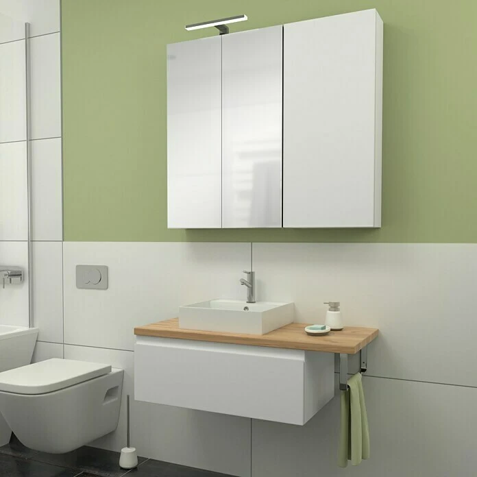 Der Hängeschrank Espacio Gama von Camargue zeichnet sich durch modernes und elegantes Design aus. Der Hängeschrank ist mit einer grifflosen Tür versehen, die aufgrund der Optik für mehr Attraktivität in Ihrem Badezimmer sorgt. Dank der integrierten Softclose-Funktion lässt sich die Tür des Hängeschrankes nahezu geräuschlos öffnen und schliessen. Ausserdem verfügt der Hängeschrank über innenliegende Einlagen aus Glas, die Platz für verschiedene Bad-Utensilien bieten. Sowohl die Front, als auch der Korpus sind beidseitig lackiert. Zur einfachen Montage wird der Hängeschrank komplett vormontiert geliefert. Die Serie Espacio ist ein Teil eines Baukastensystems, mit dem Sie unzählige Module und Elemente nach Ihren Wünschen individuell zusammenstellen können. Ausserdem lassen sich die Einzelelemente in verschiedenen Farbvariationen kombinieren.