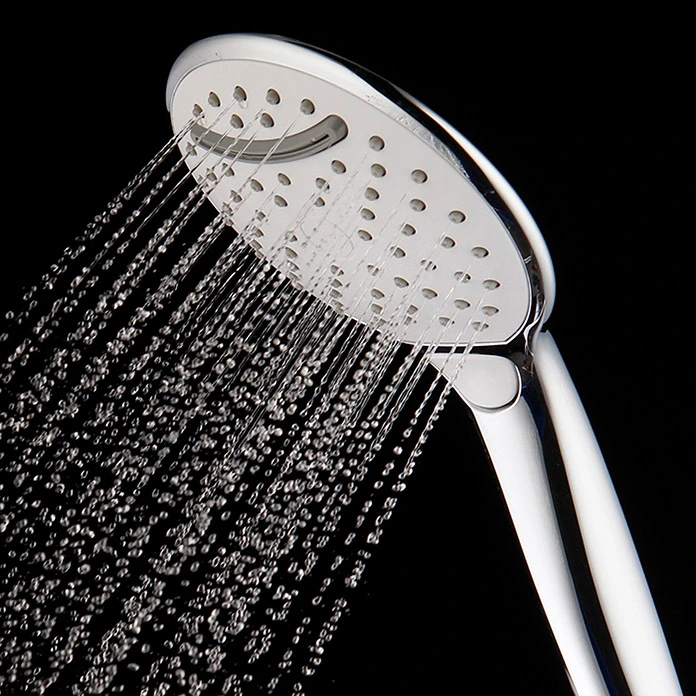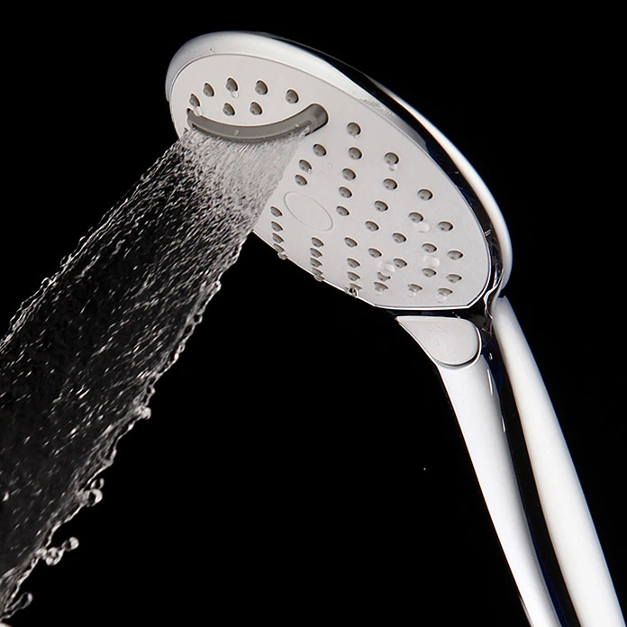 Die Handbrause Babsko von Camargue überzeugt durch ihre praktischen Eigenschaften. Sie bietet drei Strahlarten, zwischen denen man einfach per Knopfdruck wechseln kann. Das Easy Clean System verhindert nachhaltig Kalkablagerungen an den Düsen. Auf Grund ihrer ergonomischen Form liegt die Handbrause gut in der Hand und passt durch den ½» Anschluss auf jeden handelsüblichen Brauseschlauch. Sie ist KTW/W270 zertifiziert und erfüllt somit alle gültigen Trinkwassernormen.