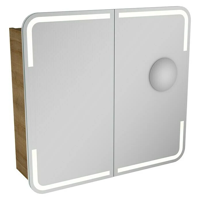 - 2 Kristallglas-Spiegeltüren, 2 Glaseinlegeböden, Innenspiegel, Vergrösserungsspiegel, Ablageschale, USB-Slot, Schalter, Steckdose
