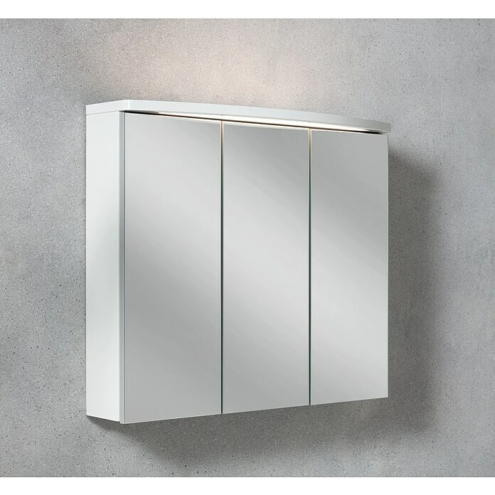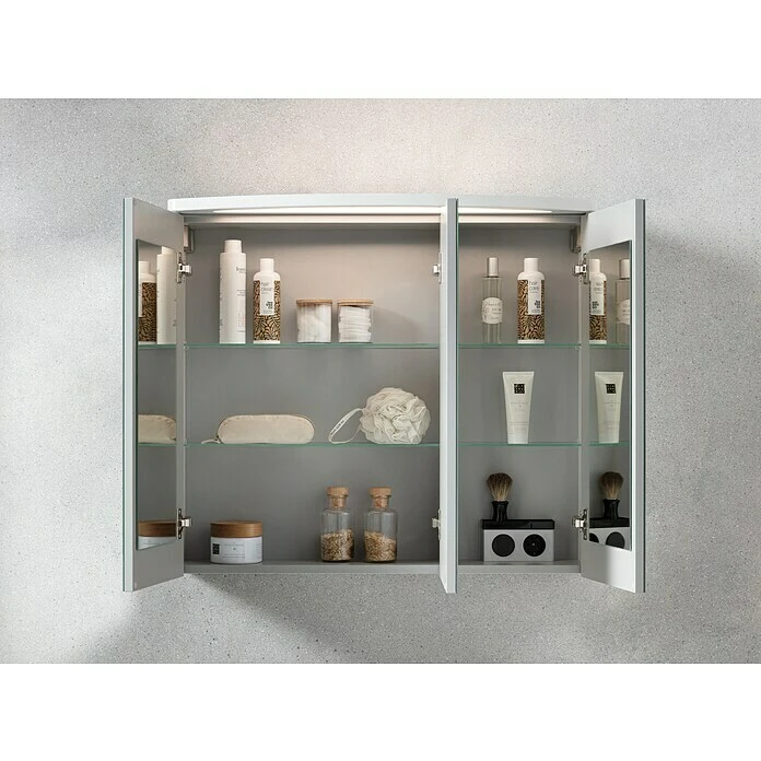 - 3 Kristallglas-Spiegeltüren, Soft-Close-System, LED-Beleuchtung, Schalter, Steckdose, 4 Glaseinlegeböden