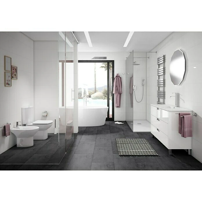 Die Wannenstandarmatur Lissabon von Camargue verleiht Ihrer freistehenden Badewanne eine extravagante Optik. Die Armatur besteht aus einem Bodenauslauf mit Eingriffmischer, einer seitlich montierten Stabhandbrause und einem Brauseschlauch. Sie zeichnet sich durch eine hohe Säule aus, die vom Boden bis über den Wannenrand reicht. Da die Rohrleitungen unter dem Boden verlegt werden, kann diese Armatur nahezu überall montiert werden.