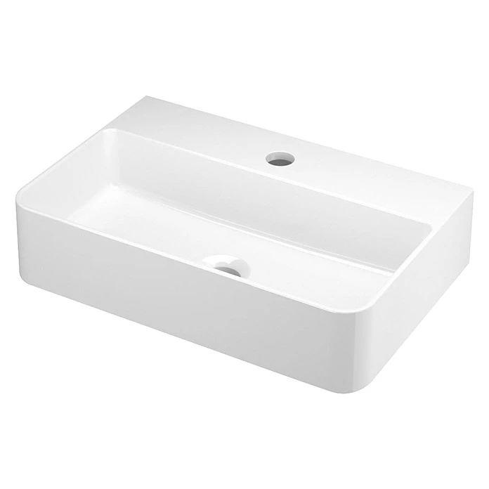 Das Waschbecken Los Angeles von Camargue ist aus hochwertiger Sanitärkeramik gefertigt und überzeugt durch die eckige Form, die dem Becken ein harmonisches und modernes Design verleiht. Das Waschbecken ist durch das grosszügig gestaltete Innenbecken vielseitig einsetzbar und eignet sich hervorragend zur freien Wand- oder Aufsatzmontage. Dank der geschliffenen Unterseite kann es ebenso auf einer passenden Konsole montiert werden. Dazu lässt sich ideal eine Armatur kombinieren. Für mehr Komfort sorgt die breite Hahnlochbank auf der man einfach Seifenspender & Co griffbereit abstellen kann.