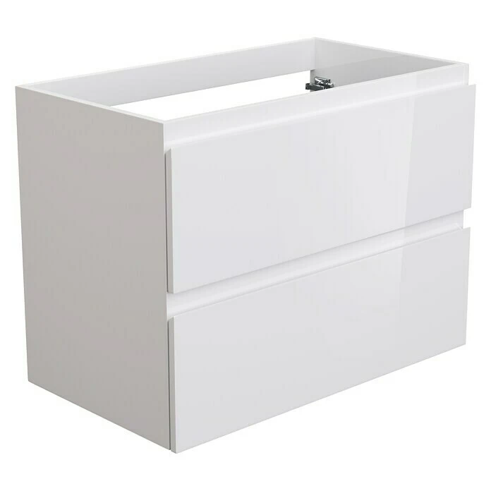 Der Waschbeckenunterschrank Espacio Gama von Camargue zeichnet sich durch modernes und elegantes Design aus. Der Unterschrank ist mit zwei grifflosen Schubladen versehen, die aufgrund ihrer schlichten modernen Optik für mehr Attraktivität in Ihrem Badezimmer sorgen. Zudem bieten die zwei Schubladen viel Stauraum für Ihre Handtücher und Badaccessoires. Dank der integrierten Softclose-Funktion lassen sich die Auszüge des Unterschrankes nahezu geräuschlos öffnen und schliessen. Sowohl die Front, als auch der Korpus sind beidseitig lackiert. Zur einfachen Montage wird der Waschbeckenunterschrank komplett vormontiert geliefert. Die Serie Espacio ist ein Teil eines Baukastensystems, mit dem Sie unzählige Module und Elemente nach Ihren Wünschen individuell zusammenstellen können. Ausserdem lassen sich die Einzelelemente in verschiedenen Farbvariationen kombinieren.