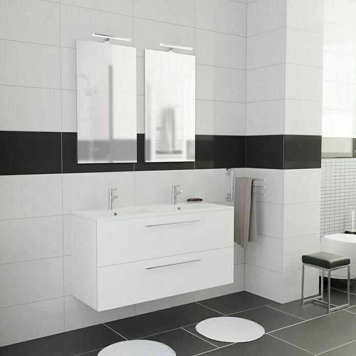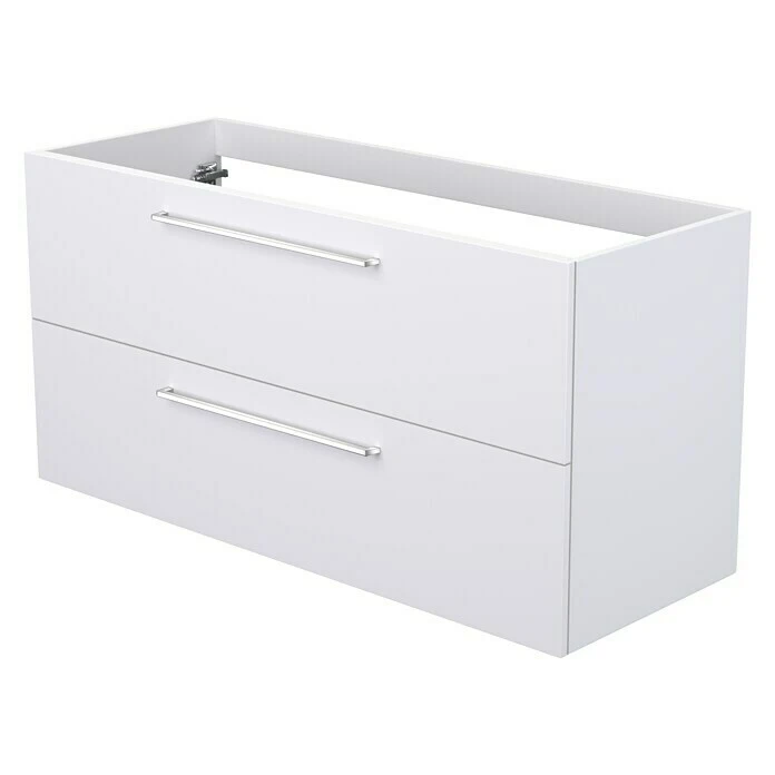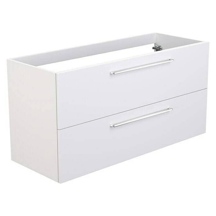 Der Waschbeckenunterschrank Espacio Mira von Camargue zeichnet sich durch modernes und elegantes Design aus. Der Unterschrank ist mit 2 Schubladen, einem Sortiersystem sowie Aluminium-Griffen versehen. Dank der beiden geräumigen Auszüge mit eckigem Kantenlauf wird Ihnen viel Platz für Ihre Handtücher und Bad-Utensilien gewährleistet. Darüber hinaus sind die 2 Schubladen mit einer integrierten Softclose-Funktion ausgestattet. Durch diese lassen sich die Schubladen des Unterschrankes nahezu geräuschlos öffnen und schliessen. Sowohl die Front, als auch der Korpus des Unterschrankes sind beidseitig melaminbeschichtet und aus Spanplatten angefertigt. Zur einfachen Montage wird der Waschbeckenunterschrank komplett vormontiert geliefert. Die Serie Espacio ist ein Teil eines Baukastensystems, mit dem Sie unzählige Module und Elemente nach Ihren Wünschen individuell zusammenstellen können. Ausserdem lassen sich die Einzelelemente in verschiedenen Farbvariationen kombinieren. Der Unterschrank besitzt 2 Siphonausschnitte. Der passende Doppelwaschtisch Espacio von Camargue ist separat erhältlich (Prod.Nr. 26757773).