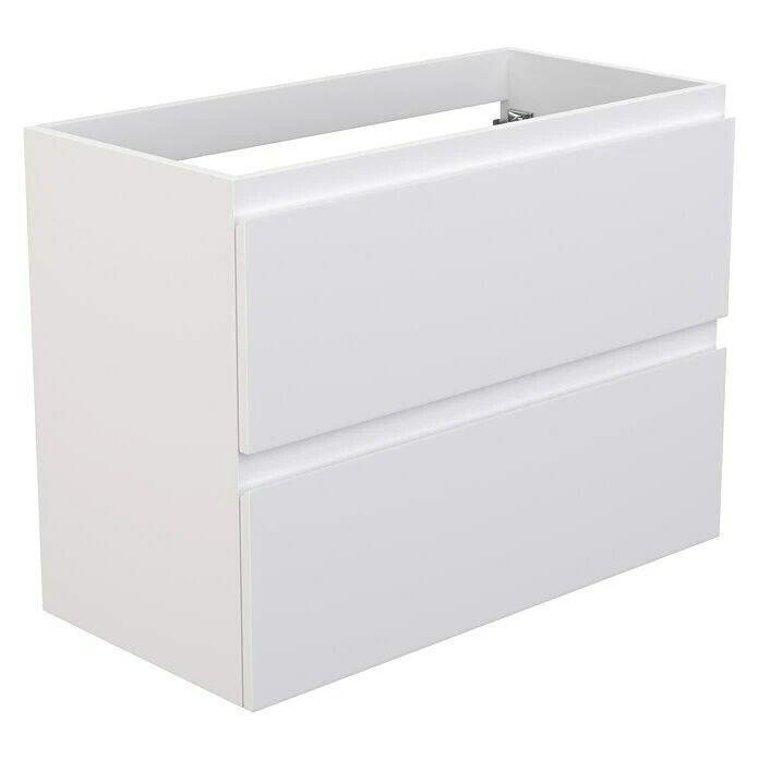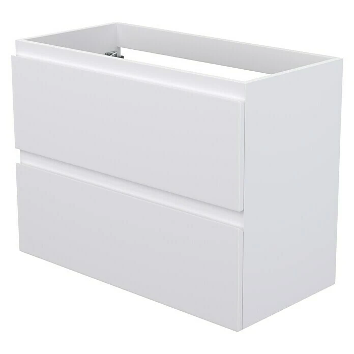 Der Waschbeckenunterschrank Espacio Gama von Camargue zeichnet sich durch modernes und elegantes Design aus. Der Unterschrank ist mit zwei grifflosen Schubladen versehen, die aufgrund ihrer schlichten modernen Optik für mehr Attraktivität in Ihrem Badezimmer sorgen. Zudem bieten die zwei Schubladen viel Stauraum für Ihre Handtücher und Badaccessoires. Dank der integrierten Softclose-Funktion lassen sich die Auszüge des Unterschrankes nahezu geräuschlos öffnen und schliessen. Sowohl die Front, als auch der Korpus sind beidseitig lackiert. Zur einfachen Montage wird der Waschbeckenunterschrank komplett vormontiert geliefert. Die Serie Espacio ist ein Teil eines Baukastensystems, mit dem Sie unzählige Module und Elemente nach Ihren Wünschen individuell zusammenstellen können. Ausserdem lassen sich die Einzelelemente in verschiedenen Farbvariationen kombinieren.