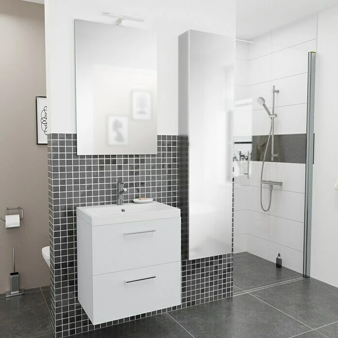 Der Waschbeckenunterschrank Espacio Mira von Camargue zeichnet sich durch modernes und elegantes Design aus. Der Unterschrank ist mit 2 Schubladen, einem Sortiersystem sowie Aluminium-Griffen versehen. Dank der beiden geräumigen Auszüge mit eckigem Kantenlauf wird Ihnen viel Platz für Ihre Handtücher und Bad-Utensilien gewährleistet. Darüber hinaus sind die 2 Schubladen mit einer integrierten Softclose-Funktion ausgestattet. Durch diese lassen sich die Schubladen des Unterschrankes nahezu geräuschlos öffnen und schliessen. Sowohl die Front, als auch der Korpus des Unterschrankes sind beidseitig melaminbeschichtet und aus Spanplatten angefertigt. Zur einfachen Montage wird der Waschbeckenunterschrank komplett vormontiert geliefert. Die Serie Espacio ist ein Teil eines Baukastensystems, mit dem Sie unzählige Module und Elemente nach Ihren Wünschen individuell zusammenstellen können. Ausserdem lassen sich die Einzelelemente in verschiedenen Farbvariationen kombinieren.
