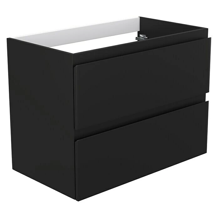 Der Waschbeckenunterschrank Espacio Gama von Camargue zeichnet sich durch modernes und elegantes Design aus. Der Unterschrank ist mit zwei grifflosen Schubladen versehen, die aufgrund ihrer schlichten modernen Optik für mehr Attraktivität in Ihrem Badezimmer sorgen. Zudem bieten die zwei Schubladen viel Stauraum für Ihre Handtücher und Badaccessoires. Dank der integrierten Softclose-Funktion lassen sich die Auszüge des Unterschrankes nahezu geräuschlos öffnen und schliessen. Sowohl die Front, als auch der Korpus sind beidseitig lackiert. Zur einfachen Montage wird der Waschbeckenunterschrank komplett vormontiert geliefert. Die Serie Espacio ist ein Teil eines Baukastensystems, mit dem Sie unzählige Module und Elemente nach Ihren Wünschen individuell zusammenstellen können. Ausserdem lassen sich die Einzelelemente in verschiedenen Farbvariationen kombinieren.