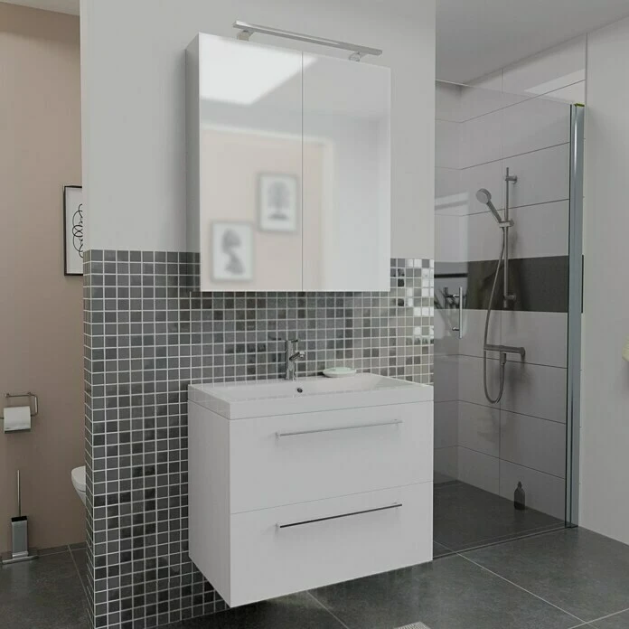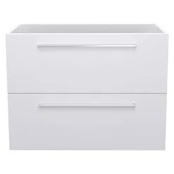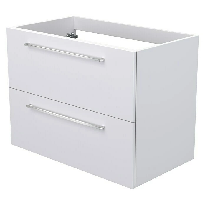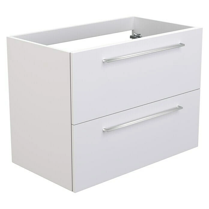 Der Waschbeckenunterschrank Espacio Mira von Camargue zeichnet sich durch modernes und elegantes Design aus. Der Unterschrank ist mit 2 Schubladen, einem Sortiersystem sowie Aluminium-Griffen versehen. Dank der beiden geräumigen Auszüge mit eckigem Kantenlauf wird Ihnen viel Platz für Ihre Handtücher und Bad-Utensilien gewährleistet. Darüber hinaus sind die 2 Schubladen mit einer integrierten Softclose-Funktion ausgestattet. Durch diese lassen sich die Schubladen des Unterschrankes nahezu geräuschlos öffnen und schliessen. Sowohl die Front, als auch der Korpus des Unterschrankes sind beidseitig melaminbeschichtet und aus Spanplatten angefertigt. Zur einfachen Montage wird der Waschbeckenunterschrank komplett vormontiert geliefert. Die Serie Espacio ist ein Teil eines Baukastensystems, mit dem Sie unzählige Module und Elemente nach Ihren Wünschen individuell zusammenstellen können. Ausserdem lassen sich die Einzelelemente in verschiedenen Farbvariationen kombinieren.