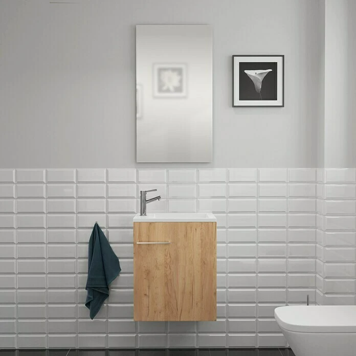 Der Espacio Waschbeckenunterschrank Doce von Camargue zeichnet sich durch modernes und elegantes Design aus. Der Waschbeckenunterschrank verfügt über eine Tür, mit Aluminium Griff und einem Einlegeboden. Der Boden ist herausnehmbar und bietet somit im inneren ausreichend Stauraummöglichkeiten. Des Weiteren ist die Tür mit einer integrierten Softclose-Funktion ausgestattet. Durch diese lässt sich die Tür nahezu geräuschlos öffnen und schliessen. Sowohl die Front, als auch der Korpus des Unterschrankes sind beidseitig melaminbeschichtet und aus Spanplatten angefertigt. Zur einfachen Montage wird der Waschbeckenunterschrank komplett vormontiert geliefert. Die Serie Espacio ist ein Teil eines Baukastensystems, mit dem Sie unzählige Module und Elemente nach Ihren Wünschen individuell zusammenstellen können. Ausserdem lassen sich die Einzelelemente in verschiedenen Farbvariationen kombinieren.