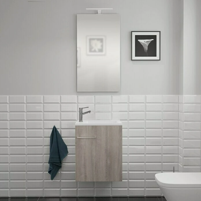 Der Espacio Waschbeckenunterschrank Doce von Camargue zeichnet sich durch modernes und elegantes Design aus. Der Waschbeckenunterschrank verfügt über eine Tür, mit Aluminium Griff und einem Einlegeboden. Der Boden ist herausnehmbar und bietet somit im inneren ausreichend Stauraummöglichkeiten. Des Weiteren ist die Tür mit einer integrierten Softclose-Funktion ausgestattet. Durch diese lässt sich die Tür nahezu geräuschlos öffnen und schliessen. Sowohl die Front, als auch der Korpus des Unterschrankes sind beidseitig melaminbeschichtet und aus Spanplatten angefertigt. Zur einfachen Montage wird der Waschbeckenunterschrank komplett vormontiert geliefert. Die Serie Espacio ist ein Teil eines Baukastensystems, mit dem Sie unzählige Module und Elemente nach Ihren Wünschen individuell zusammenstellen können. Ausserdem lassen sich die Einzelelemente in verschiedenen Farbvariationen kombinieren.