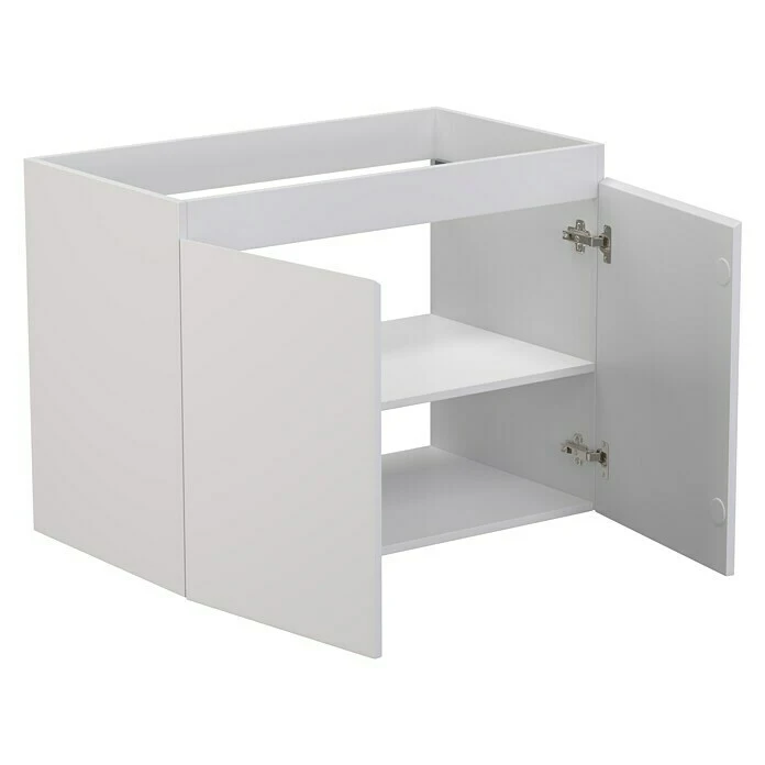 Der Espacio Waschbeckenunterschrank Gama von Camargue zeichnet sich durch modernes und elegantes Design aus. Der Unterschrank ist mit 2 grifflosen Türen versehen, die aufgrund der Optik für mehr Attraktivität in Ihrem Badezimmer sorgen. Dank der integrierten Softclose-Funktion lassen sich die Türen des Unterschrankes nahezu geräuschlos öffnen und schliessen. Des Weiteren verfügt der Waschbeckenunterschrank über einen herausnehmbaren Einlegeboden. Sowohl die Front, als auch der Korpus sind beidseitig lackiert. Zur einfachen Montage wird der Waschbeckenunterschrank komplett vormontiert geliefert. Die Serie Espacio ist ein Teil eines Baukastensystems, mit dem Sie unzählige Module und Elemente nach Ihren Wünschen individuell zusammenstellen können. Ausserdem lassen sich die Einzelelemente in verschiedenen Farbvariationen kombinieren.