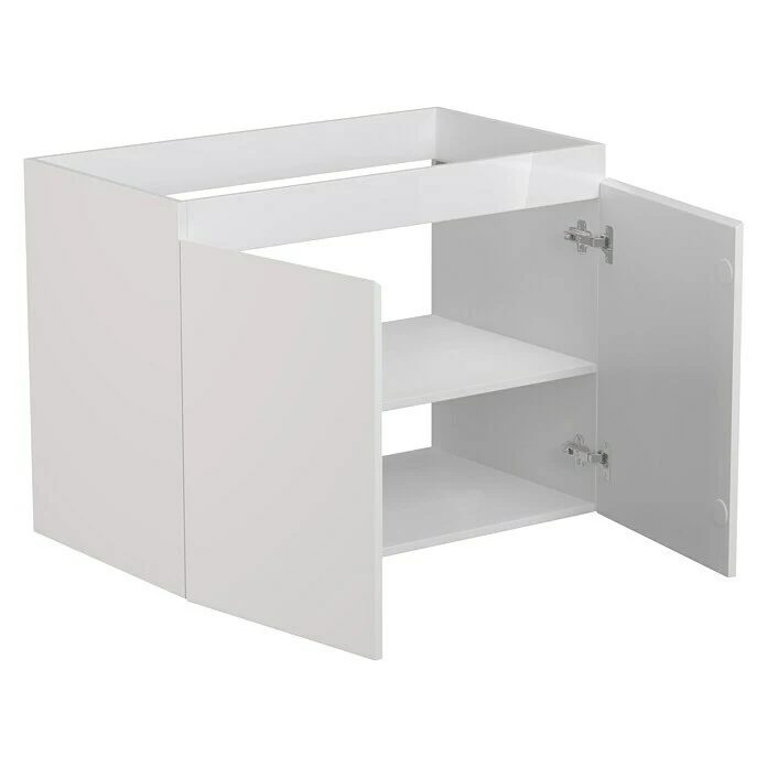 Der Espacio Waschbeckenunterschrank Gama von Camargue zeichnet sich durch modernes und elegantes Design aus. Der Unterschrank ist mit 2 grifflosen Türen versehen, die aufgrund der Optik für mehr Attraktivität in Ihrem Badezimmer sorgen. Dank der integrierten Softclose-Funktion lassen sich die Türen des Unterschrankes nahezu geräuschlos öffnen und schliessen. Des Weiteren verfügt der Waschbeckenunterschrank über einen herausnehmbaren Einlegeboden. Sowohl die Front, als auch der Korpus sind beidseitig lackiert. Zur einfachen Montage wird der Waschbeckenunterschrank komplett vormontiert geliefert. Die Serie Espacio ist ein Teil eines Baukastensystems, mit dem Sie unzählige Module und Elemente nach Ihren Wünschen individuell zusammenstellen können. Ausserdem lassen sich die Einzelelemente in verschiedenen Farbvariationen kombinieren.