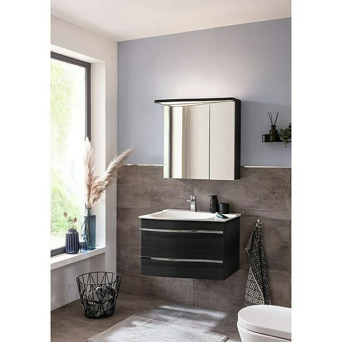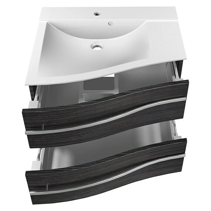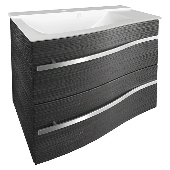 Die Waschplätze Lineo von Camargue sind ein Meisterstück moderner Badgestaltung aus Designerhand. Dazu tragen in erster Linie die elegante Linienführung des Waschbeckenunterschranks und des Beckens bei. Alle Elemente vereint ein filigraner Schwung, den sogar der hochwertige Metallgriff am Unterschrank aufgreift. Durch das geschwungene Design bietet das 70 cm breite Möbel genügend Platz auch in kleinen Bädern. Der Waschbeckenunterschrank mit den zwei grosszügigen Schubladen bieten viel Stauraum für alle nötigen Badutensilien. Auch der Beckenrand bietet viel Stellplatz für Seifenspender und Zahnputzbecher. Die Serie Lineo ist in linker und rechter Variante, in 5 verschiedenen Oberflächen, sowie mit Spiegelschrank oder Spiegel erhältlich.