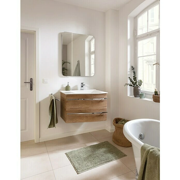Die Waschplätze Lineo von Camargue sind ein Meisterstück moderner Badgestaltung aus Designerhand. Dazu tragen in erster Linie die elegante Linienführung des Waschbeckenunterschranks und des Beckens bei. Alle Elemente vereint ein filigraner Schwung, den sogar der hochwertige Metallgriff am Waschbeckenunterschrank aufgreift. Durch das geschwungene Design bietet das 70 cm breite Möbel genügend Platz auch in kleinen Bädern. Der Waschbeckenunterschrank mit den zwei grosszügigen Schubladen bieten viel Stauraum für alle nötigen Badutensilien. Auch der Beckenrand bietet viel Stellplatz für Seifenspender und Zahnputzbecher. Die Serie Lineo ist in linker und rechter Variante, in 5 verschiedenen Oberflächen, sowie mit Spiegelschrank oder Spiegel erhältlich.
