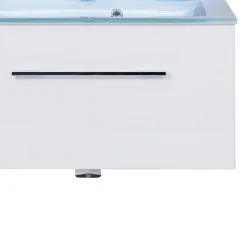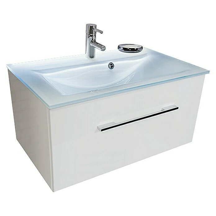Mit dem Camargue Waschbeckenunterschrank Stella lassen Sie ihr Bad in ganz neuem Licht erstrahlen. Denn hier setzt eine LED-Beleuchtung Waschtisch und Unterschrank schön in Szene, unterstreicht damit die elegante Formgebung und schafft damit ein nobles Ambiente in Ihrem Bad. Die Beleuchtung wird durch einen Bewegungsmelder ausgelöst und taucht Ihr Bad in eine angenehme Atmosphäre. Der Waschbeckenunterschrank verfügt über einen Schubladenauszug, das im Inneren ausreichend Stauraummöglichkeiten bietet. Der Korpus und die Schubladenfront sind hochwertig verarbeitet und beidseitig melamin- bzw folienbeschichtet. Das Öffnen und Schliessen des Auszugs verläuft dank speziellen Softclose-Beschlägen sowohl mühelos als auch geräuschlos. Der Waschbeckenunterschrank wird zu einfachen Montage komplett vormontiert geliefert und bildet mit dem separat erhältlichen Waschtisch und dem dazugehörigen Lichtspiegel eine harmonische Einheit. Ein Raumsparsiphon ist im Lieferumfang enthalten.