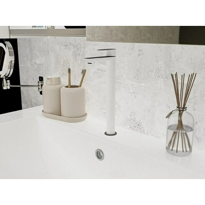Die Waschtischarmatur Frost von Camargue passt durch ihr modernes Design auf jedes Waschbecken. Der extra hohe Auslauf, ist ideal für das Haare waschen am Waschbecken geeignet. Durch die Bedienbarkeit mit einer Hand kann bequem die Durchflussmenge und die Temperatur geregelt werden. Die hochwertige Kartusche mit keramischen Dichtscheiben gewährleistet dabei eine leichte und leise Bedienung des Hebels. Flexible Anschlussschläuche und die übersichtliche Anleitung helfen Ihnen, diese Armatur mühelos anzubringen.