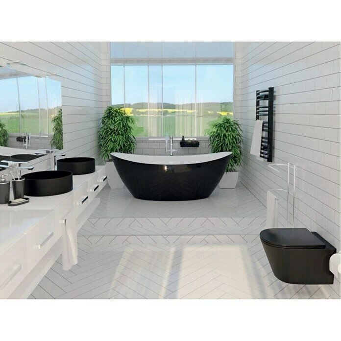 Elegante Schönheit kombiniert mit hohem Liegekomfort, dies zeichnet die freistehende Badewanne Arezzo aus. Durch das spezielle Farbdesign in schwarz-weiss ist sie ein absoluter Blickfang in jedem Bad und lädt förmlich dazu ein, ein Bad zu nehmen. Die dauerhafte 4 – 5 mm Acryloberschicht ist porenfrei, schmutzabweisend, besonders farbecht und wirkt angenehm warm. Wer gerne länger badet, liegt im Modell Arezzo genau richtig – ob alleine oder auch zu Zweit die Wanne bietet genügend Platz zum entspannen und relaxen. Sie ist mit einer Ab- und Überlaufgarnitur mit Klick-Klack-System ausgestattet. Am besten lässt sich die Wanne mit einer Wannenstandarmatur kombinieren.