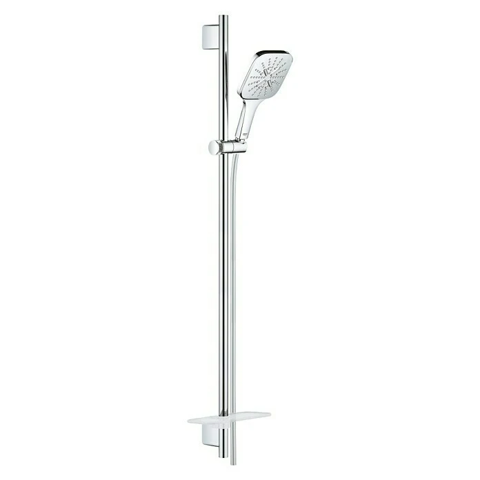 Die Brausegarnitur Rainshower SmartActive Cube 130 besteht aus einer Brausestange mit GROHE EasyReach Ablage, einem Brauseschlauch Silverflex mit 175 cm sowie der Handbrause Rainshower SmartActive Cube mit 3 Strahlarten. Die drei belebenden Strahlarten können mittels innovativem SmartTip-Schalter auf der Rückseite ausgewählt werden: der sanfte Rain-Strahl, ein kräftiger Jet-Strahl und die intensive ActiveMassage-Funktion. DreamSpray verteilt dabei den Wasserfluss stets gleichmässig auf alle Düsen. Die Handbrause ist mit EcoJoy-Wasserspartechnik ausgestattet, was den Wasserverbrauch um bis zu 40 % reduziert – ohne jeglichen Komfortverlust. Mit der SpeedClean-Funktion verschwinden Rückstände im Handumdrehen. Lästige Kalkablagerungen werden dank der integrierten Antikalk-Noppen durch simples Reiben gelöst. Die StarLight-Chromoberfläche liefert langlebigen Hochglanz und erweist sich zudem als besonders widerstandsfähig gegen Schmutz und Kratzer. Mit dem genormten ½“- Anschluss ist die Handbrause universell kompatibel.