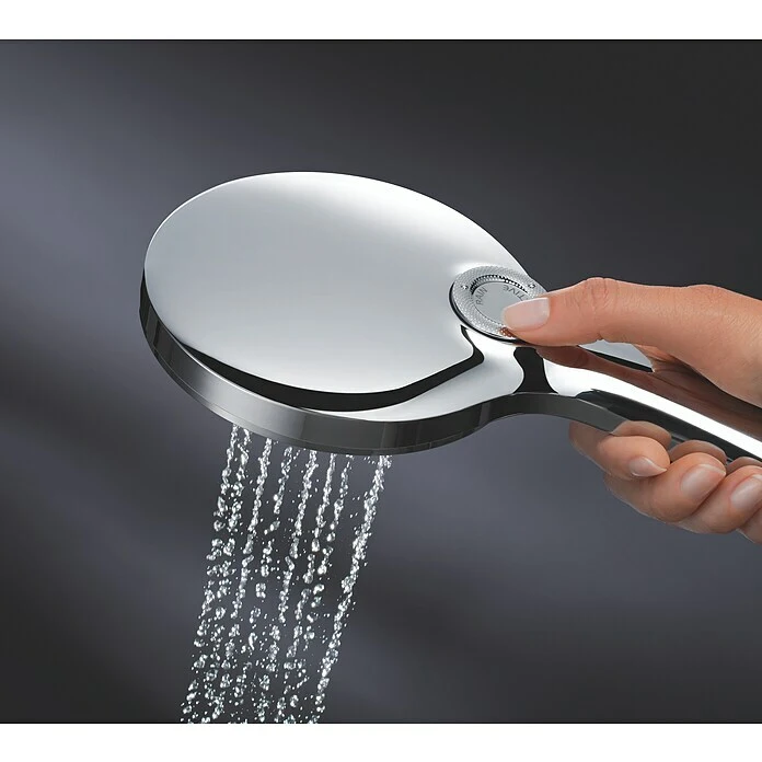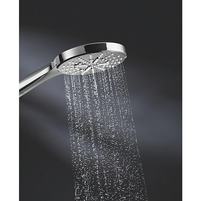 Die Handbrause Rainshower SmartActive 130 von GROHE überzeugt in Funktion und Design. Drei belebende Strahlarten können mittels innovativem SmartTip-Schalter auf der Rückseite ausgewählt werden: der sanfte Rain-Strahl, ein kräftiger Jet-Strahl und die intensive ActiveMassage-Funktion. DreamSpray verteilt dabei den Wasserfluss stets gleichmässig auf alle Düsen. Die Handbrause ist mit EcoJoy-Wasserspartechnik ausgestattet, was den Wasserverbrauch um bis zu 50 % reduziert – ohne jeglichen Komfortverlust. Mit der SpeedClean-Funktion verschwinden Rückstände im Handumdrehen. Lästige Kalkablagerungen werden dank der integrierten Antikalk-Noppen durch simples Reiben gelöst. Die StarLight-Chromoberfläche liefert langlebigen Hochglanz und erweist sich zudem als besonders widerstandsfähig gegen Schmutz und Kratzer. Mit dem genormten ½“- Anschluss ist die Handbrause universell kompatibel.