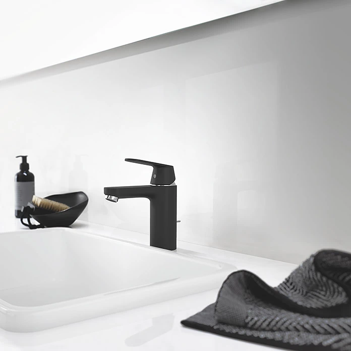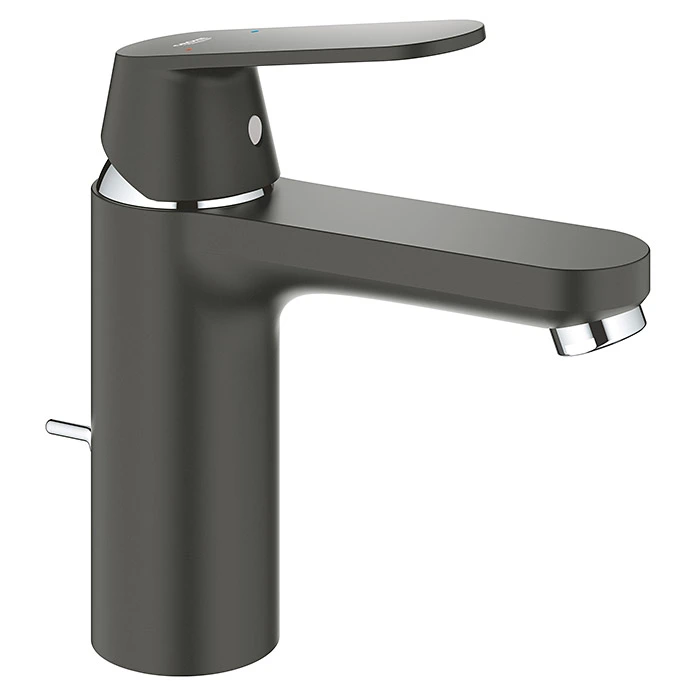 Der Waschtischmischer Eurosmart von GROHE verpasst durch sein besonderes matt scharzes Finish jedem Waschbecken eine extravagante Optik. Eine geniale Mischung aus einfachen Rundungen und fliessenden Formen verbindet sich hier mit technischen Finessen. Dank des Bedienelements aus Metall mit GROHE SilkMove® Keramikkartusche bleibt die Bedienung stets sanft, präzise und bequem, auch nach jahrelangem Einsatz. Die Keramikkartusche verfügt über eine variabel einstellbare Mengenbegrenzung. Diese dient der einfachen Senkung des Wasserverbrauchs bei Betätigung der Waschtischarmatur. Der siebförmige Einsatz, der den Wasserstrahl zum Moussieren, also zum Perlen bringt, sorgt für ein besonderes Wassererlebnis. Das GROHE QuickFix® Schnellmontagesystem mit Zentrierhilfe ist schnell verständlich und vereinfacht die Befestigung des Waschtischmischers.