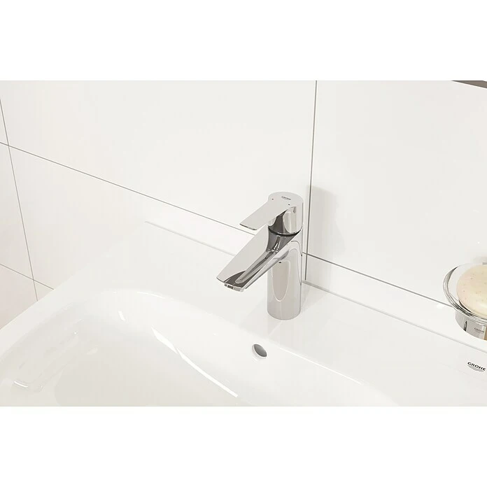 Der Waschtischmischer Start von GROHE bietet eine schlanke, zeitgemässe Optik und dank des höheren Auslaufs noch mehr Komfort. Dieser Waschtischmischer der Grösse S ist für die Ein-Loch-Montage konzipiert. Die praktische Zugstangen-Ablaufgarnitur wird über eine kleine Stange auf der Armatur-Rückseite betätigt. So lässt sich der Ablauf einfach öffnen und schliessen und Ihre Hände bleiben trocken. Mit der langlebigen GROHE SilkMove Keramikkartusche lassen sich Wassermenge und Temperatur über einen robusten Metallhebel präzise regeln. Der integrierte Temperaturbegrenzer spart Energie. Die GROHE EcoJoy Technologie begrenzt den Wasserverbrauch auf 5.7 l/min. Dank der isolierten, innenliegenden Wasserführung von GROHE Zero kommt nur blei- und nickelfreies Wasser aus dem Waschtischmischer. Mit dem GROHE QuickFix Installationssystem mit 3-in-1-Werkzeug und flexiblen Anschlussschläuchen lässt sich die Armatur im Handumdrehen montieren. Mit dem mitgelieferten 3-in-1-Werkzeug können Sie im Handumdrehen die Mutter für die Wannenrandmontage anziehen, die Anschlussschläuche befestigen und den Strahlregler zu Wartungszwecken entfernen und wieder montieren. Mit der strahlenden und robusten GROHE StarLight Chromoberfläche bleibt der Glanz der Badezimmer-Armatur jahrelang erhalten.
