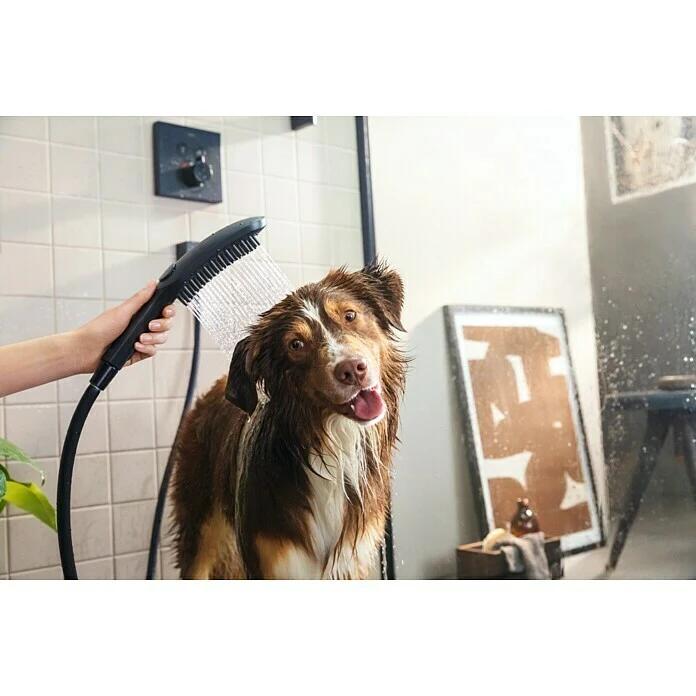 Die Hundeduschbrause DogShower 150 Pink von Hansgrohe bietet eine Vielzahl von Funktionen, um die Pflege und Reinigung deines Hundes zu vereinfachen. Mit drei einstellbaren Strahlarten kannst du zwischen sanfter Pflege und effizienter Reinigung wählen. Die weichen Noppen-Düsen ermöglichen es dir, deinen Hund zu bürsten und gleichzeitig zu massieren, während das Wasser fliesst. Darüber hinaus bietet die WaterBoost-Funktion die Möglichkeit, den Wasserfluss individuell per Knopfdruck zu erhöhen, um hartnäckigen Schmutz gründlich zu entfernen. Mit der Hundeduschbrause erhältst du ein praktisches und vielseitiges Werkzeug zur optimalen Pflege deines geliebten Haustieres.