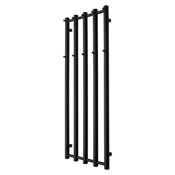 Der Heizkörper Kiro mit seinem schlichten Design in Schwarz ist perfekt für jedes Badezimmer. Der Heizkörper sorgt für behagliche Wärme und Badetücher können perfekt vorgewärmt werden. Er kann an das zentrale Heizsystem angeschlossen werden oder auch mit einem Heizstab elektrisch betrieben werden. Die Anschlüsse befinden sich auf beiden Seiten unten. Der Heizkörper wird mit dem benötigten Montagematerial geliefert. Der Heizstab muss separat bestellt werden.