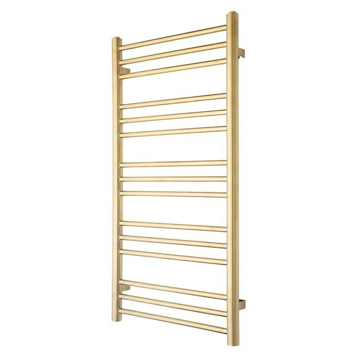 Der elektrische Heizkörper Plus 15 besticht durch sein minimalistisches Design in luxuriösem Gold. Der Heizkörper sorgt für behagliche Wärme und Badetücher können perfekt vorgewärmt werden. Er kann an das zentrale Heizsystem angeschlossen werden oder auch mit einem Heizstab elektrisch betrieben werden. Die Anschlüsse befinden sich auf beiden Seiten unten. Der Heizkörper wird mit dem benötigten Montagematerial geliefert. Der Heizstab muss separat bestellt werden.