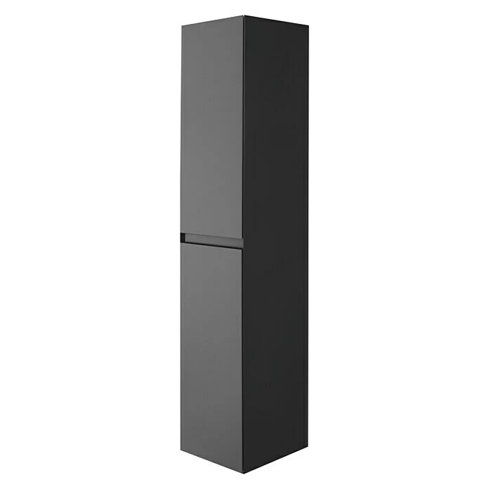 Der Hochschrank Space zeichnet sich durch sein modernes, schlichtes Design aus. Die lackierten dunklen Fronten ohne Griffe und der dunkle Korpus unterstreichen die kubische Form. Die Griffe werden durch die Fräsung am oberen Ende der Fronten ersetzt. Der vormontierte Schrank verfügt über zwei Türen und ist im Inneren mit vier Glaseinlegeböden ausgestattet. Diese bieten viel Platz für verschiedenste Badutensilien. Die Türen schliessen dank der Soft-Close-Funktion sanft und leise. Der Hochschrank wird zu einfachen Montage komplett vormontiert geliefert und bildet mit dem separat erhältlichen Waschtisch, Waschtischunterschrank und dem dazugehörigen Lichtspiegel eine harmonische Einheit.