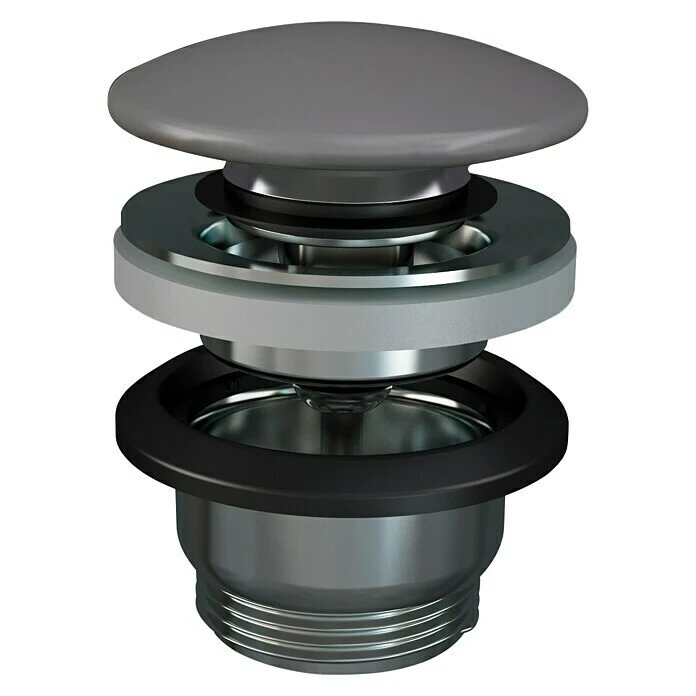 Das Klick-Klack Ablaufventil Feeling ist ein Ventil mit praktischer Pop-up-Funktion zum Öffnen und Schließen des Wasserablaufs im Waschbecken. Das Ventil hat ein 1¼» Gewinde und passt perfekt in den Waschtisch, so dass es praktisch unsichtbar ist und den Eindruck einer ebenen Fläche vermittelt. Das Ablaufventil Feeling fügt sich nahtlos in die gleichnamige Sanitärserie ein.