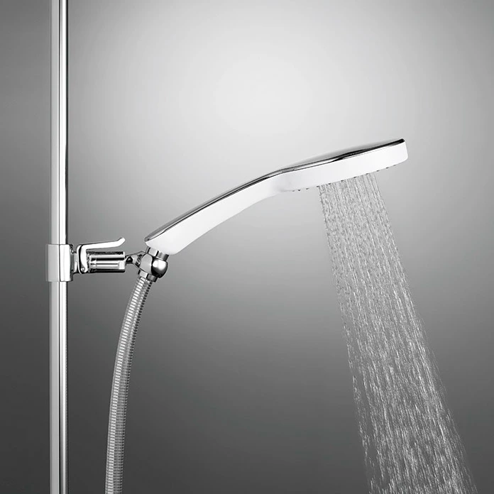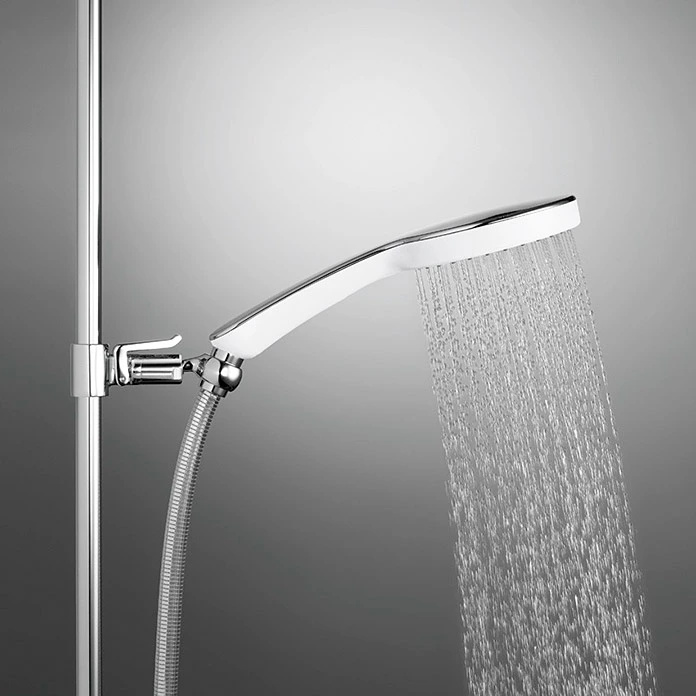 Die Handbrause Bossanova Duo von KWC überzeugt durch ihr modernes Design. Sie verfügt über 2 Strahlarten – den fitJet und den spaJet – die Ihnen ein rundum berauschendes Duscherlebnis garantieren. Durch den touchcontrol wird die Handbrause nicht heiss. Der ergonomische Griff sorgt für ein angenehmes Duschvergnügen. Zudem wird der zuletzt gewählte Brausestrahl eingestellt sobald Sie das Wasser abstellen. Mit dem genormten ½“- Anschluss, der abgewinkelt ist, passt die Handbrause auf alle handelsüblichen Brauseschläuche.