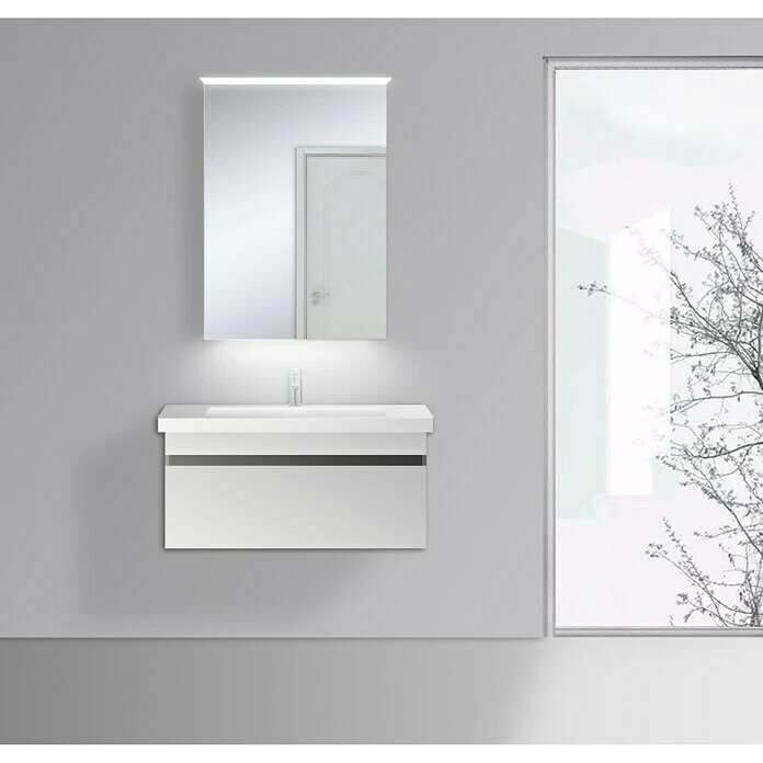 Mit dem LED-Spiegelschrank Aluminio Light holen Sie sich Innovation und Design in Ihr Bad. Der Spiegelschrank begeistert durch seine innovative und energiesparende LED-Technik sowie flexibel nutzbarem Stauraum. Er ist nicht nur ein praktischer Badspiegel sondern es lassen sich vielerlei Kosmetikartikel, Pflegeutensilien oder Medikamente übersichtlich hinter der verglasten Spiegeltür verstauen. Die beiden LED-Reihen am Spiegel setzen eindrucksvolle Akzente und sorgen für eine gleichmässige Ausleuchtung. Zudem verfügt der Schrank über einen integrierten Stromanschluss, so dass Sie Ihren Rasierer oder Föhn bequem anschliessen können. Er ist zur einfachen Montage bereits vormontiert.