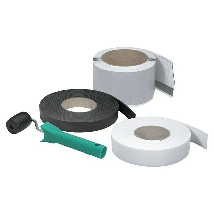 - 1 Rolle Wannenabdichtband, 1 Rolle Schalldämmstreifen, 1 Rolle Fliesentrennstreifen, Montagezubehör