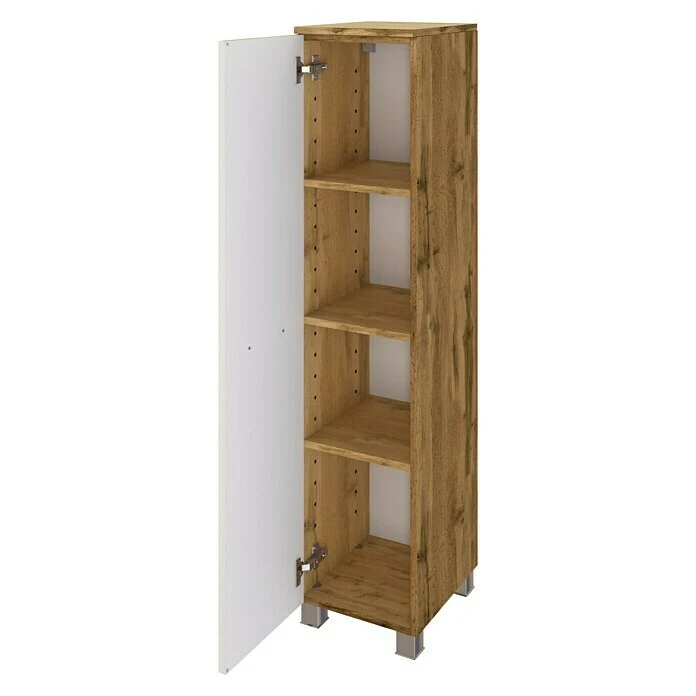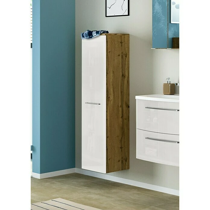 Der Midischrank Genua ist eine passende Ergänzung zum gleichnamigen Badmöbel. Er bietet im Inneren zusätzlichen Stauraum auf 4 verstellbaren Tablaren. Der Schrank kann wandhängend montiert werden oder auch mit den mitgelieferten Möbelfüssen auf den Boden gestellt werden. Die folierten Türen in Weiss Hochglanz sind mit Soft-Close-Funktion ausgestattet und schliessen sanft und leise.