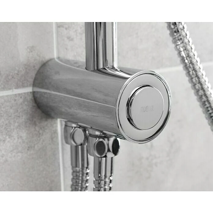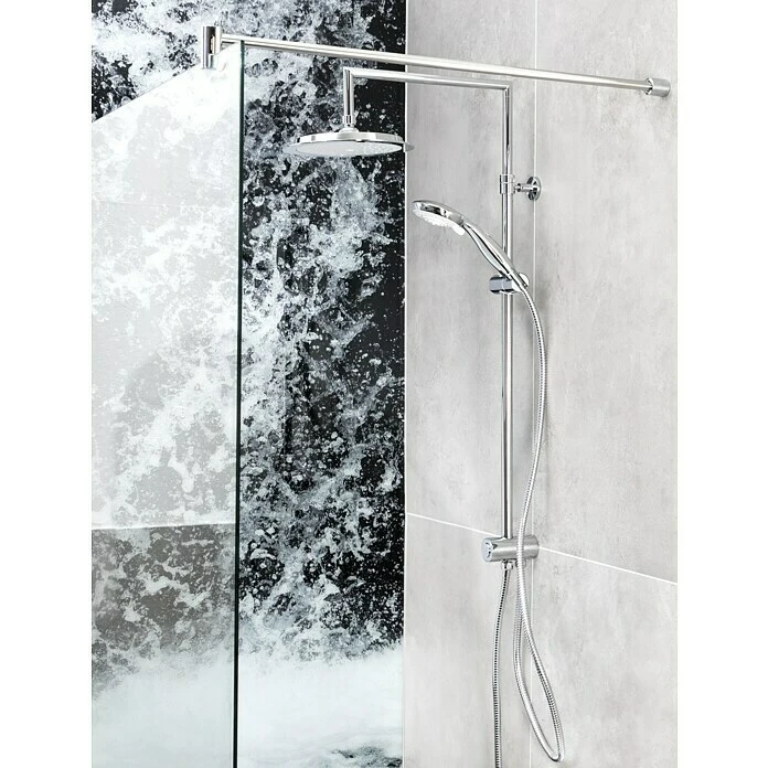 Das Duschsystem Denver von mixomat ist die perfekte Lösung für ein luxuriöses Duscherlebnis mit Kopf- und Handbrause. Das komfortable Komplettset besteht aus einer Kopfbrause und einer vollverchromten Handbrause. Die Neigung und Ausrichtung der Kopfbrause kann auch noch nach der Montage den eigenen Bedürfnissen angepasst werden. Des Weiteren sind ein höhenverstellbares Steigrohr und ein Brauseschlauch Bestandteil des Duschsystems. Letztere sind mit ½» Anschlüssen versehen und passen auf jeden handelsüblichen Anschluss. Dank der Anti-Twist-Eigenschaft wird das lästige Verdrehen der Schläuche verhindert. Die Anbringung der Brausestange erfolgt per Bohren mit dem im Lieferumfang enthaltenen Montagematerial. Alle Bestandteile des Sets, die mit Wasser in Verbindung kommen, sind KTW/W270 zertifiziert und erfüllen somit alle gültigen Trinkwassernormen.
