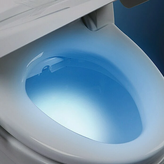 - Mit Absenkautomatik, Warmluftföhn, Anal- und Ladydüse, Sitzheizung, LED-Nachtlicht