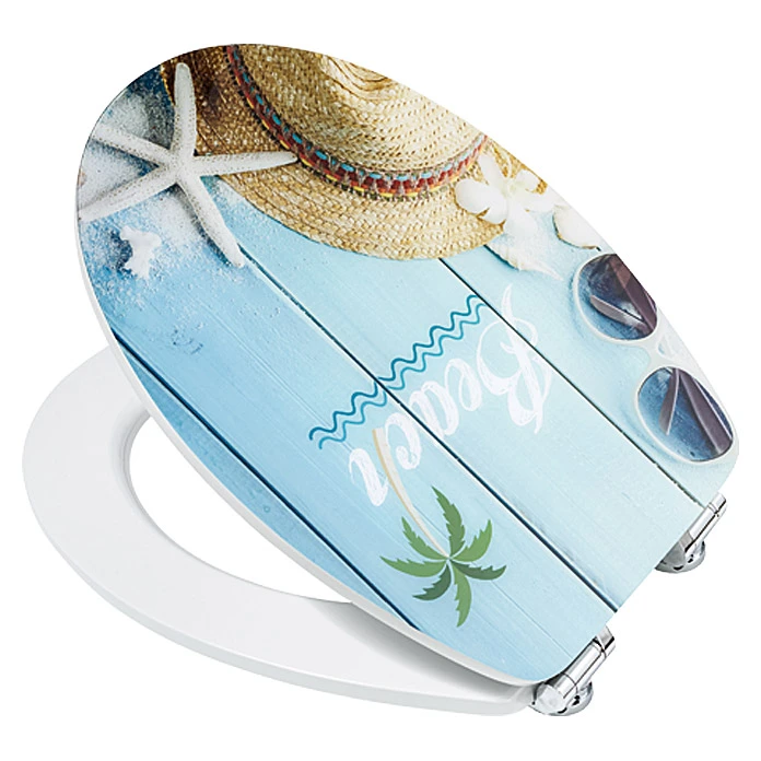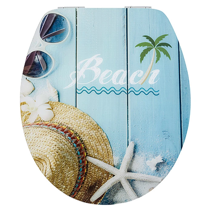 Der WC-Sitz Beach von POSEIDON ist besonders einzigartig und verbreitet durch seine Meeresmotive Strandatmosphäre in Ihrem Badezimmer. Der WC-Sitz aus hochwertigem MDF ist extrem strapazierfähig und seine Oberfläche acrylbeschichtet. Das sehr harte und bruchsichere MDF ist extrem strapazierfähig und eignet sich somit auch besonders für viel frequentierte Bäder und Toiletten. Die variabel verstellbaren Scharniere sind mit zwei Druckknöpfen ausgestattet – diese ermöglichen eine direkte Trennung des WC-Deckels mit dem Scharnier, was die Reinigung erleichtert. Die integrierte Absenkautomatik sorgt für ein sanftes und geräuschloses Schliessen. Aufgrund seiner pflegeleichten Oberfläche ist er einfach und schnell zu reinigen und bietet optimalen Sitzkomfort.