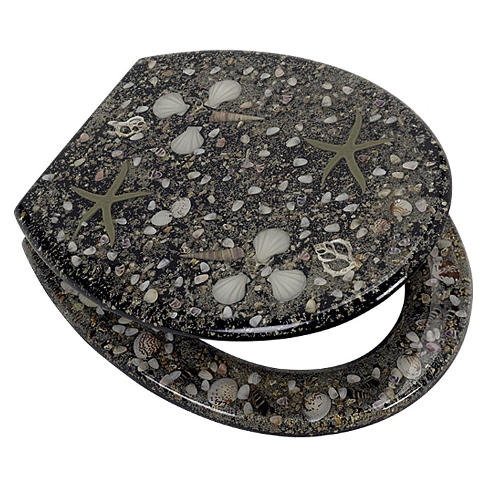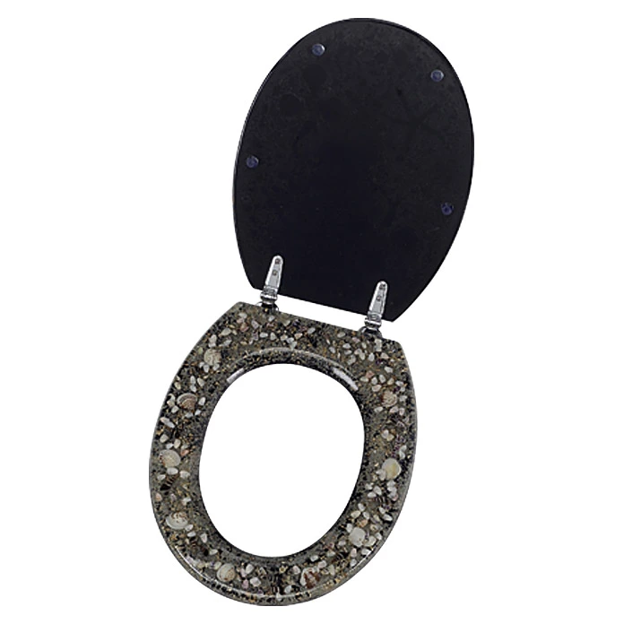 Der WC-Sitz Concha von POSEIDON ist aus strapazierfähigem und bruchfestem Polyresin (Kunstharz) gefertigt. Mit seinem edlen Dekor mit Strandmotiven, ist dieser WC-Sitz ein echter Blickfang. Er bietet angenehmen Sitzkomfort und hat eine leicht zu reinigende Oberfläche. Die variabel verstellbaren Metallscharniere ermöglichen ausserdem eine einfache Montage des WC-Sitz.