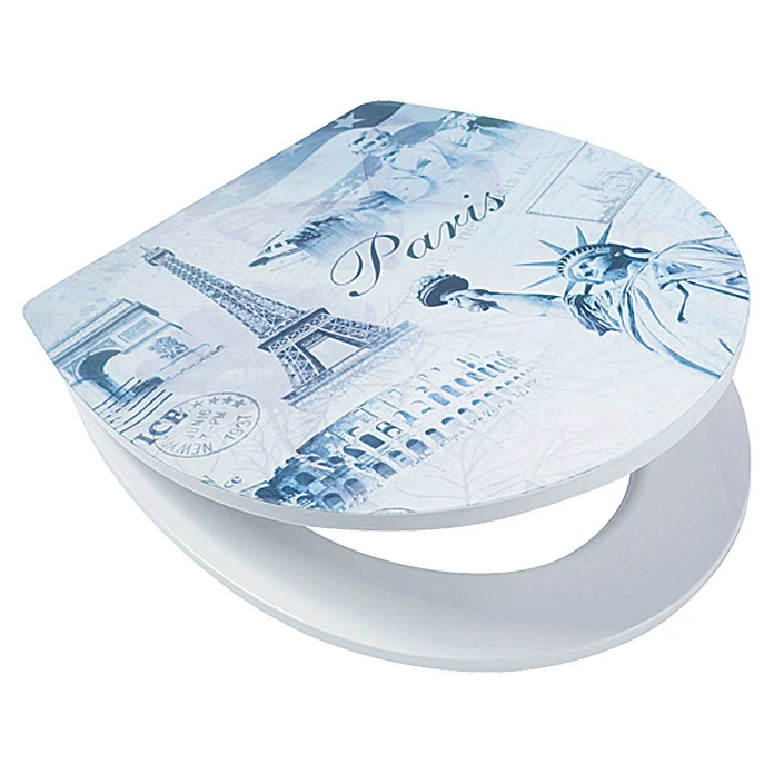 Der WC-Sitz Lifestyle von POSEIDON setzt mit seiner neuartigen Hologrammoberfläche klare Akzente. Das Prinzip ist pfiffig: Die Oberfläche des WC-Sitzes wurde mit 2 Bildern bedruckt – je nach Winkel des Deckels sehen Sie das eine, oder das andere. Der WC-Sitz ist aufgrund seiner hochwertigen Verarbeitung aus Duroplast extrem strapazierfähig und nahezu bruchsicher. Um die Reinigung des WC-Sitzes zu erleichtern sind die Scharniere mit einer Quick-Release-Funktion ausgestattet. So lässt sich der Deckel vom WC abnehmen und leichter Reinigen. Ein weiteres praktisches Detail ist die integrierte Absenkautomatik, die für ein sanftes und leises Schliessen des Deckels sorgt.