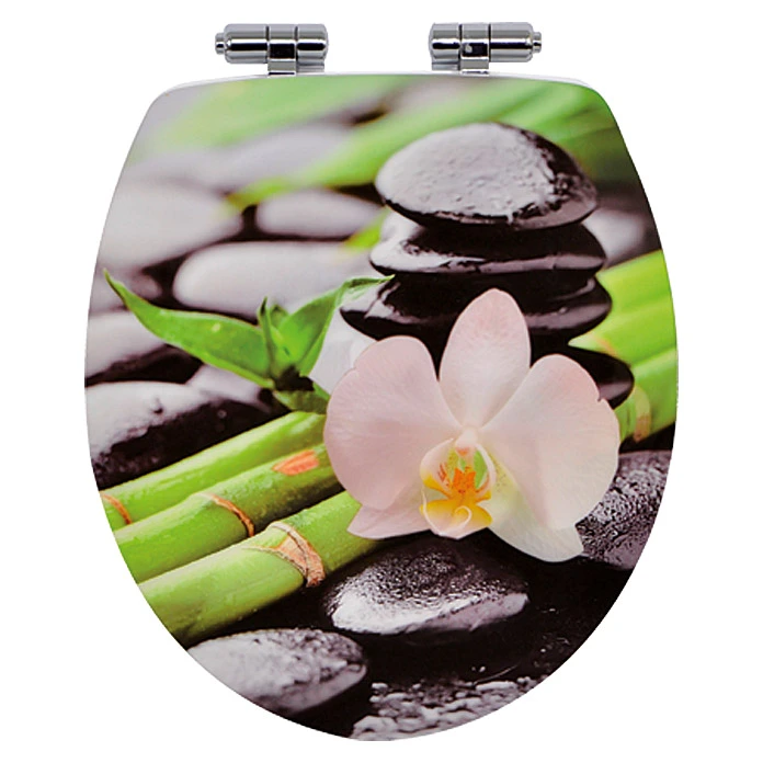 Der WC-Sitz Orchidee von Poseidon ist aus hochwertigem MDF gefertigt und überzeugt mit seiner einzigartig glänzenden Acrylbeschichtung. Das sehr harte und bruchsichere MDF ist extrem strapazierfähig und eignet sich somit auch besonders für viel frequentierte Bäder und Toiletten. Mit seinem aussergewöhnlich modernen Blüten-Relief passt dieser Sitz nahezu auf jedes Standard-WC. Die variabel verstellbaren Scharniere sind mit zwei Druckknöpfen ausgestattet – diese ermöglichen eine direkte Trennung des WC-Deckel mit dem Scharnier und erleichtert so die Reinigung. Die integrierte Absenkautomatik sorgt für ein sanftes und geräuschloses Schliessen. Aufgrund seiner pflegeleichten Oberfläche ist er einfach und schnell zu reinigen und bietet optimalen Sitzkomfort.