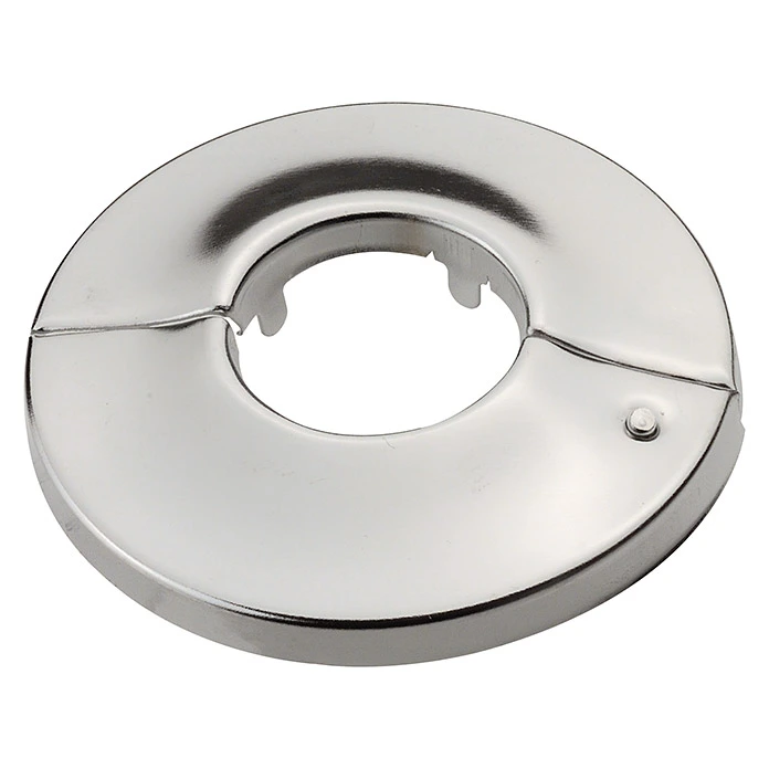Die Schanierrosette wird einfach über das vorhandene Rohr geschoben und deckt so zu gross geratene und unschöne Wand- und Bodenausbrüche ab. Die Rosette lässt sich zur einfachen Montage in zwei Hälften trennen.