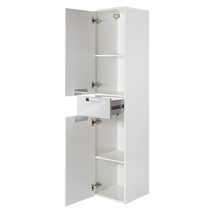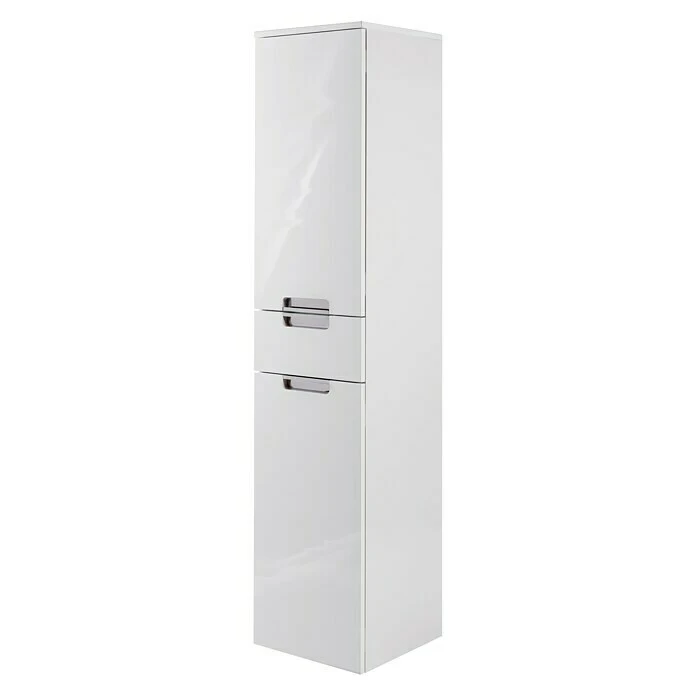 Der Hochschrank Sunny von Schildmeyer überzeugt durch sein elegantes Design, raffinierte Griffleisten sowie der tiefgezogenen MDF-Front. Mit einer Höhe von 159 cm und den zwei Einlegeböden sowie der Schublade, bietet der Hochschrank Platz für verschiedenste Bad-Utensilien. Hochwertige Metallbeschläge sorgen für kinderleichtes öffnen und schliessen der Türen und des Auszugs der Schublade. Der Hochschrank ist für die Wandmontage konzipiert worden.