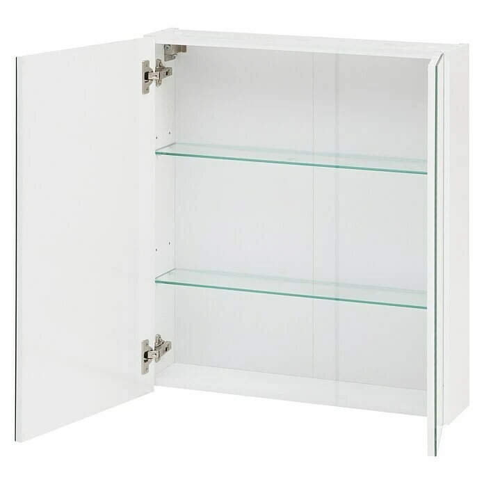 Der Spiegelschrank Lorenz von Schildmeyer überzeugt mit seinem eleganten Design. Er besitzt eine grosszügige Spiegelfläche, die in zwei einzelne Türen unterteilt ist, und Pflege- und Kosmetikprodukten den passenden Platz genau da bietet, wo sie gebraucht werden. Aufgrund der variablen Inneneinteilung mit verstellbaren Glas-Einlegeböden wird eine flexible Unterbringung ermöglicht. Der Spiegelschrank ist zur einfachen Selbstmontage geeignet und kann hervorragend zur Badmöbelserie Padua von Schildmeyer kombiniert werden.