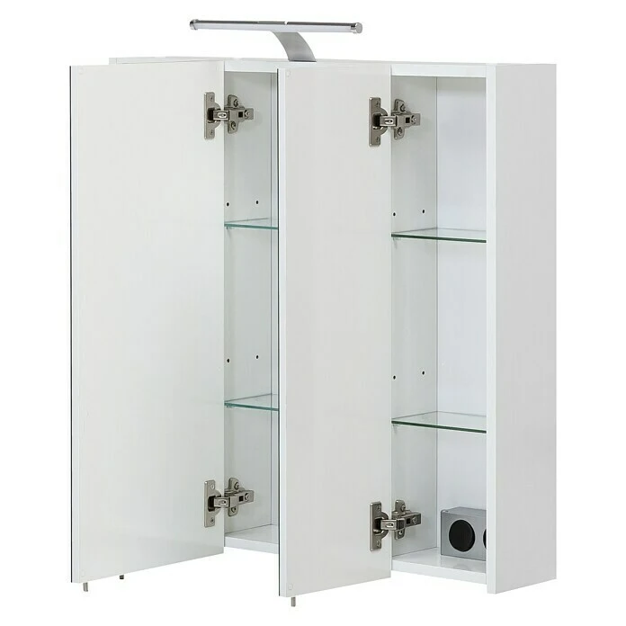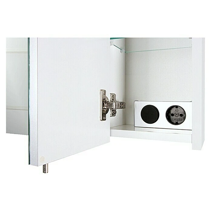 - 3 Kristallglas-Spiegeltüren, 6 Einlegeböden, Lichtschalter, Steckdose