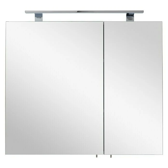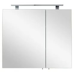- 2 Spiegeltüren (50/30), LED-Aufbauleuchte, 2 Einlegeböden, Beschlagbeutel, Montageanleitung