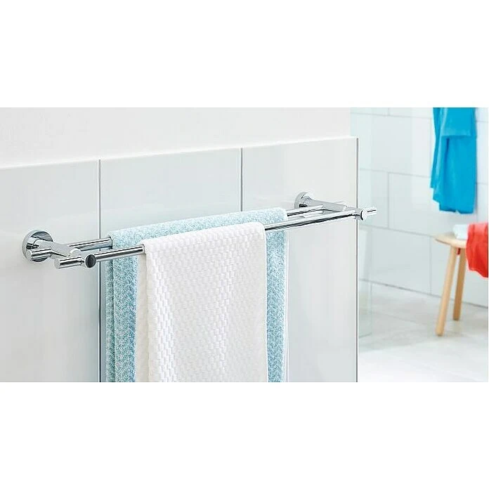 Die doppelte Badetuchstange LO212 von tesa aus der Badserie Loxx kann dank patentierter Befestigungstechnik leicht, bequem und ganz ohne Bohren, Lärm und Schmutz in Ihrem Bad befestigt werden. Durch ihre hochglanzverchromte Optik ist sie ein absoluter Eyecatcher in jedem Bad. Die Haftflächen müssen tragfähig, sauber, trocken, fett- und trennmittelfrei sein. Die Fläche am besten mit einem trockenen, sauberen Tuch fest abreiben. Verwenden Sie auf keinen Fall Badreiniger – diese enthalten meist Antihaftsubstanzen. Trennschichten können meist mit reinem Alkohol (Isopropanol oder Propylalkohol) aus der Apotheke entfernt werden. Bei gewachsten Natursteinen wachslösenden Reiniger verwenden.