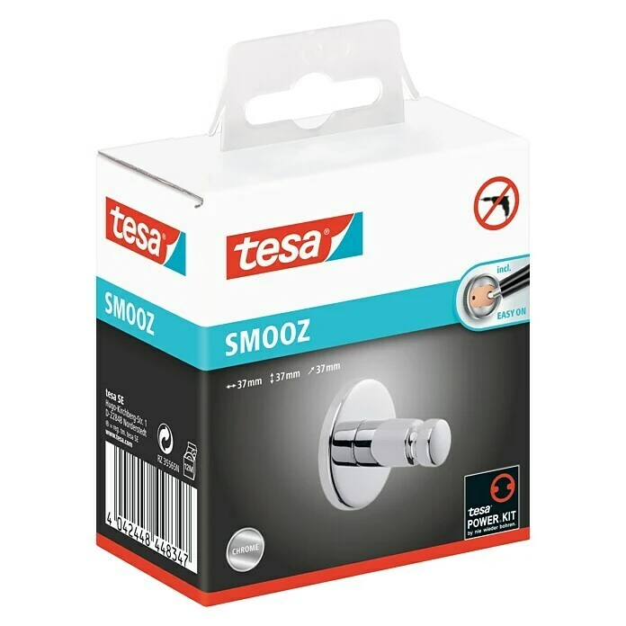 Der Handtuchhaken von tesa aus der Badserie Smooz kann dank patentierter Befestigungstechnik leicht, bequem und ganz ohne Bohren, Lärm und Schmutz in Ihrem Bad befestigt werden. Durch seine Grösse eignet er sich sehr gut als Aufhängemöglichkeit in einem kleineren Bad. Seine hochglanzverchromte Optik ist ein absoluter Eyecatcher in jedem Bad. Der Handtuchhaken kann mit weiteren Badaccessoires aus der gleichen Serie ergänzt werden für ein einheitliches Bild in Ihrem Bad. Zudem kann er rückstandslos wieder entfernt werden.